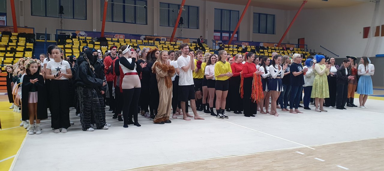 Přehlídka pohybových skladeb se konala 1.4.2026. Účastnilo se jí 10 studentských skladeb a široké spektrum exhibic. Vítězná skladba Za sedmero bažinami, složená ze studentů 3.ročníku Učitelství TV v aprobační kombinaci, získala nominaci na Akademické Mistrovství ČR. Druhá skladba v pořadí, inspirovaná pohádkou V hlavě, získala respekt všech účastníků i poroty, a bude rovněž reprezentovat UJEP na AMČR, které se koná 24.6.2026 na půdě Masarykovy Univerzity v Brně. Blahopřejeme a držme palce v další soutěži.